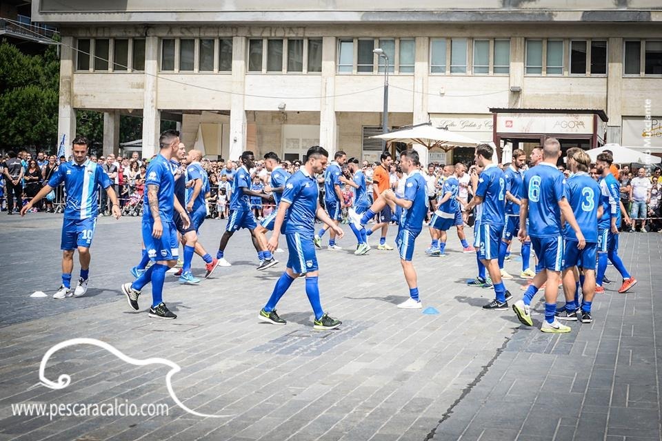 Fra i più festeggiati all'arrivo in piazza, oltre a mister Oddo, il capitano Ledian Memushaj, che giocherà il match di andata ma non quello di ritorno perché impegnato per gli Europei con l'Albania, e il bomber Gianluca Lapadula, capocannoniere del torneo di B con 29 reti, attualmente nel mirino di numerose formazioni di serie superiore. Presente anche il sindaco di Pescara Marco Alessandrini. La finale di ritorno si disputerà giovedì 9 giugno, alla stessa ora, al Provinciale di Trapani.