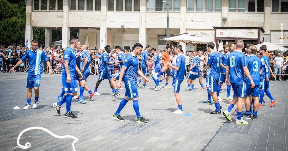 TUTTI IN PIAZZA PER IL PESCARA. Oltre duemila tifosi del Delfino Pescara hanno salutato i biancazzurri che questa mattina alle 11 hanno svolto un risveglio muscolare pre gara in Piazza della Rinascita, in pieno centro città. Un abbraccio caloroso per i ragazzi di Massimo Oddo che questa sera alle 20,30 affronteranno nella finale di andata dei play-off promozione il Trapani dell'ex Serse Cosmi.