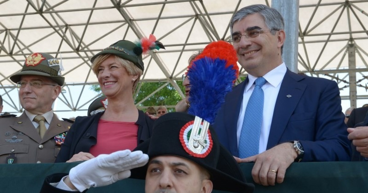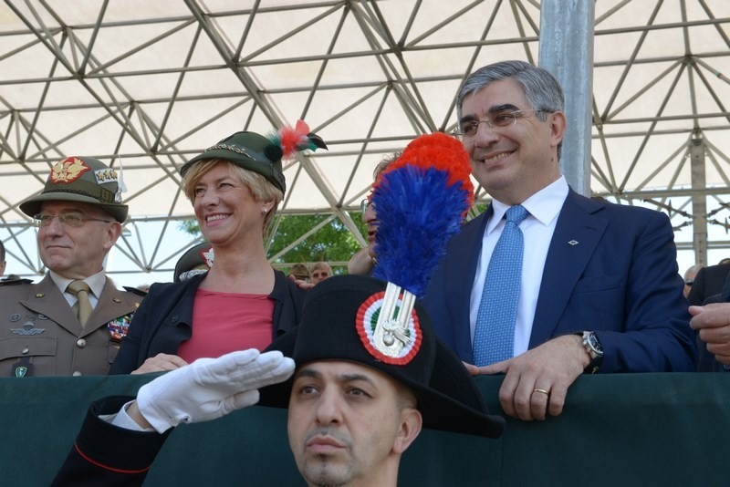 oberta Pinotti è giunta a L'Aquila per salutare il corpo degli Alpini. Al suo fianco il presidente Luciano D'Alfonso