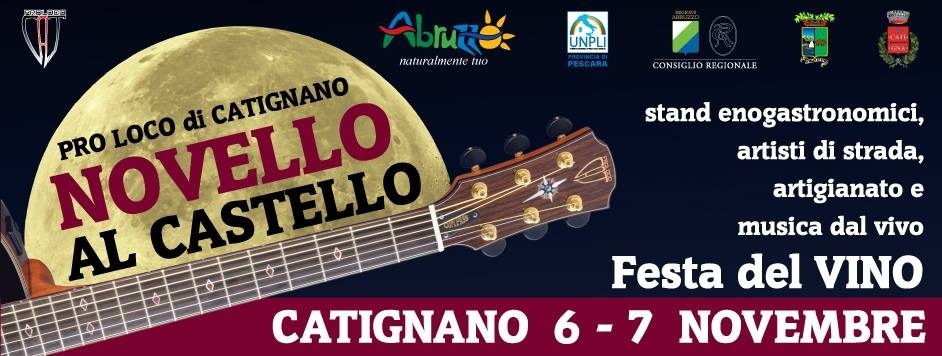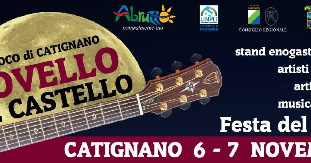 A CATIGNANO TORNA L'APPUNTAMENTO 'NOVELLO AL CASTELLO'. Torna come di consueto ogni anno l'evento 'Novello al Castello' decima edizione. In occasione del decennale la festa diventa più grande con 12 cantine che proporranno piatti tipici abruzzesi, vini delle etichette della zona, sangria vin brule e castagne. Raddoppiata anche l'offerta musicale con le migliori band che si sono esibite nelle edizioni passate. Poi ci saranno gli artisti di strada, mercatino d' artigianato e mostra d'arte. Appuntamento il 6 e 7 Novembre a Catignano. Non mancate.