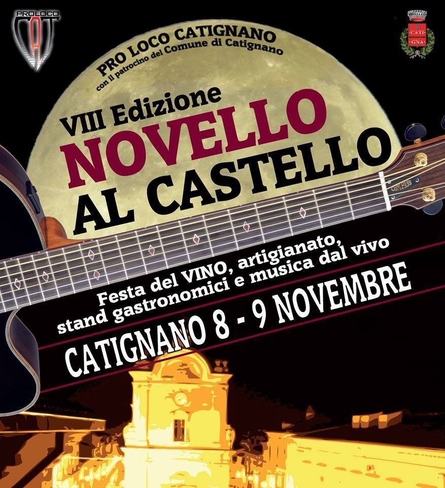 NOVELLO AL CASTELLO Si ripete come di consueto quest'anno,l'8 e il 9 novembre per le vie antiche del castello di Catignano la manifestazione di cantine aperte organizzata dalla Pro Loco di Catignano dove si potranno assaporare i nuovi vini delle cantine limitrofe, piatti tipici particolari della zona diversi dentro ogni propria cantina accompagnati come da nessun altra parte da tanta bella musica live da un mercatino d'artigianato, praticamente una manifestazione a cui non si può proprio mancare.