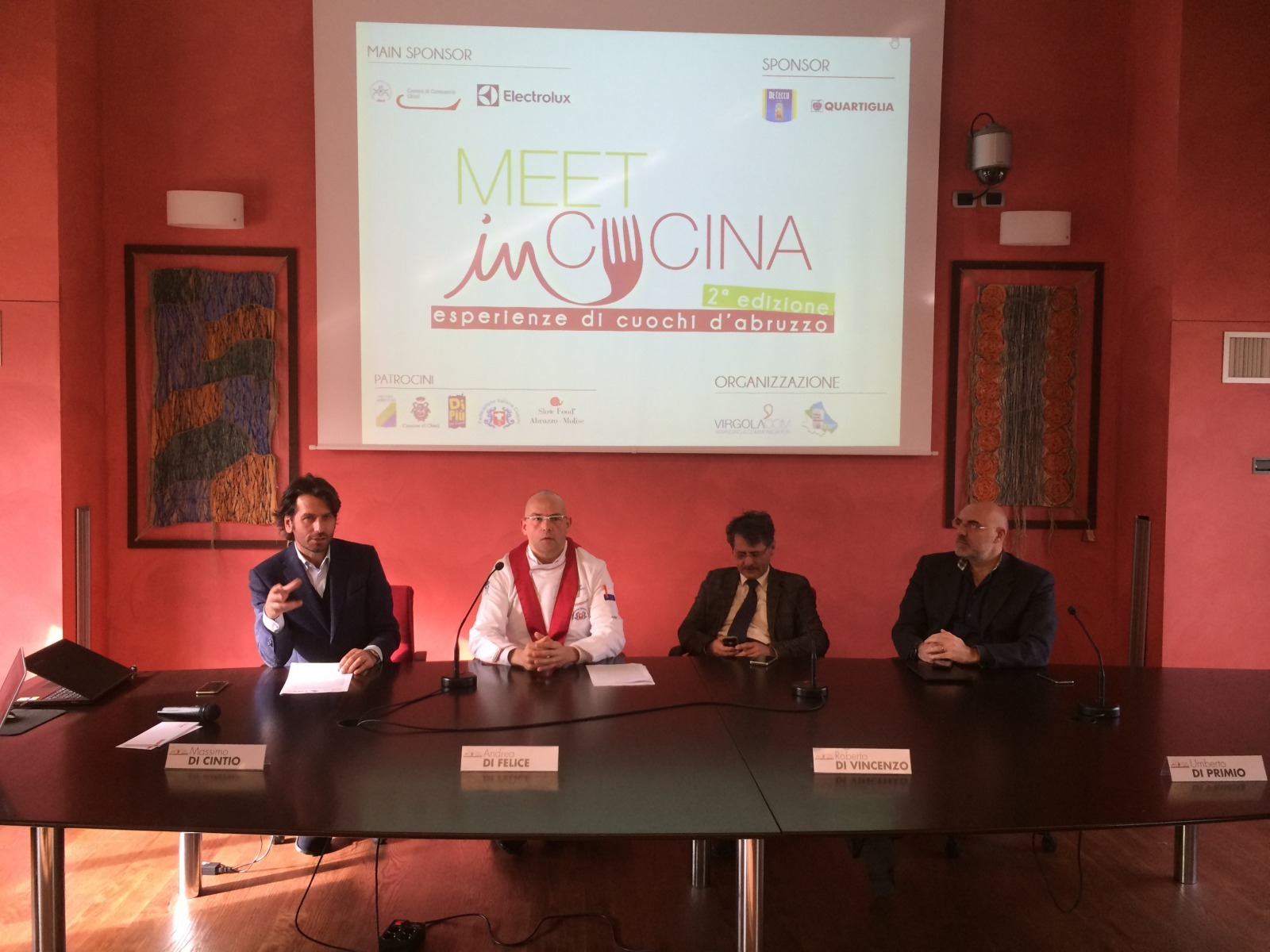 A CHIETI TORNA MEET IN CUCINA, ESPERIENZE DI CUOCHI D’ABRUZZO. Dopo il successo della prima edizione è tutto pronto per il secondo appuntamento con MEET in CUCINA, l’evento riservato a cuochi e operatori della ristorazione in programma lunedì 18 gennaio 2016 negli spazi del centro espositivo della Camera di Commercio di Chieti. Meet in Cucina, ideato dal giornalista Massimo Di Cintio, è promosso dall'Unione Cuochi Abruzzesi (UCA), dal dalla Camera di Commercio di Chieti e dal Comune di Chieti, ed è affiancata da importanti partner nazionali e regionali che operano nel settore: Electrolux per le cucine (main sponsor); Quartiglia per la distribuzione di prodotti alimentari e pasta De Cecco (sponsor); partner sono Acqua Panna-S. Pellegrino; Pentole Agnelli per le pentole; Giblor’s per il vestiario professionale; Agape per i materiali e le attrezzature. Hospitality Partner è il Villa Maria Hotel&Spa di Francavilla al Mare. La formula si ispira ai grandi congressi nazionali e internazionali di cucina e prevede l’intervento sul palco di 8 cuochi relatori: tra gli abruzzesi ci saranno Niko Romito (Reale Casadonna Castel di Sangro***), la famiglia Tinari (Villa Maiella, Guardiagrele), la famiglia Spadone (La Bandiera, Civitella Casanova*), Matteo Iannaccone (Cafè Les Paillotes, Pescara*), Nicola Fossaceca (Al Metrò, San Salvo Marina*), Nadia Moscardi (Elodia nel Parco, L’Aquila) e Cristian Di Tillio (Il Ritrovo d’Abruzzo, Civitella Casanova). Ospite d’onore della seconda edizione sarà Massimo Bottura, chef titolare dell’Osteria Francescana di Modena, al secondo posto nella speciale classifica “The World's 50 Best Restaurants” (www.theworlds50best.com) e premiato con i massimi punteggi dalle guide italiane e internazionali. E’ previsto inoltre l’intervento di Rocco Pozzulo, presidente nazionale della Federazione Italiana Cuochi e del professor Leonardo Seghetti che illustrerà la sua ricerca sulle varietà di grani e di farine locali, sui lieviti e sulla preparazione del pane per la ristorazione. Verdure, spezie e ortaggi dimenticati, carni bianche, affumicatura, marinatura, conservazione edesaltazione del crudo saranno alcuni degli altri temi affrontati nel corso del congresso. Nel corso della giornata di lavori, i partecipanti potranno inoltre incontrare aziende di produzione e di distribuzione di prodotti alimentari, attrezzature e servizi per la ristorazione all’interno dell’area partner con circa 25 espositori.