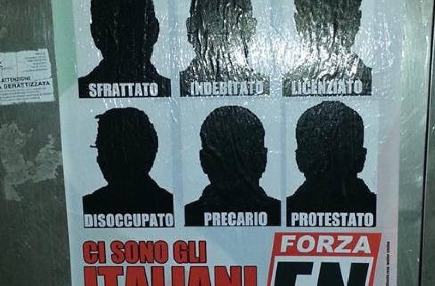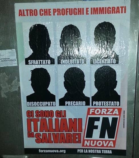 IMMIGRAZIONE E RAZZISMO. L'ABRUZZO E' A RISCHIO. Dopo Chieti è toccato alla Città di Montesilvano balzare al centro del dibattito politico sul tema "caldissimo" dell'accoglienza degli immigrati e profughi, sbarcati in Italia, perchè in fuga dalla guerra. Forza Nuova, formazione politica di estrema destra come Casapound e che detiene in città un numero di sostenitori non indifferente - il coordinatore regionale Marco Forconi è di Montesilvano, ha affisso una serie di manifesti alla Caritas, nella zona dei Grandi Alberghi, al Comune di Montesilvano e sulla Riviera Nord per esprimere assoluta contrarietà alla decisione di ospitare clandestini a Montesilvano.