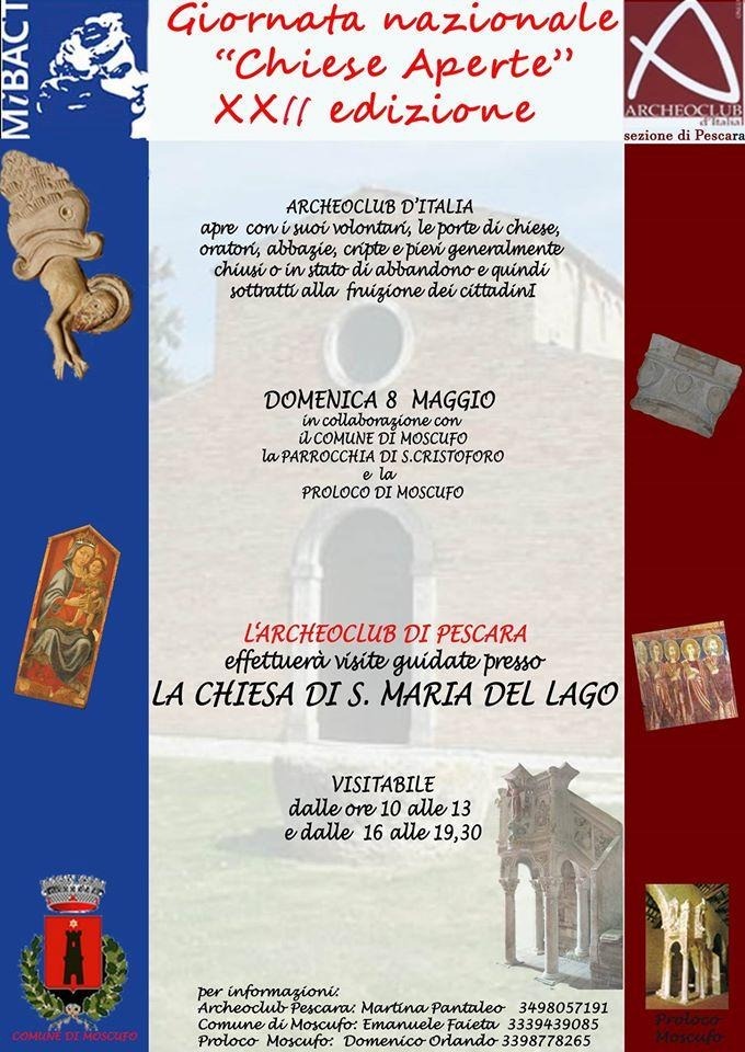 Anche quest'anno Archeoclub di Pescara aprirà la chiesa romanica di santa Maria del Lago in Moscufo in collaborazione con la locale amministrazione comunale.