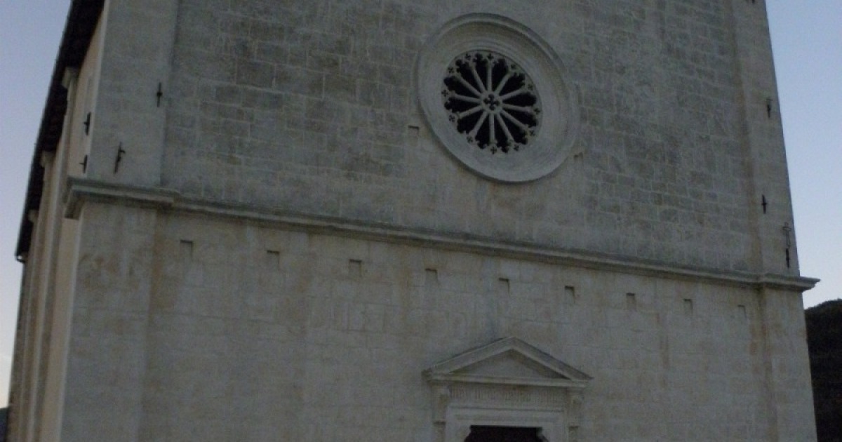 La chiesa, risalente al XVI secolo, si trova nel cuore dell’Altopiano di Navelli e riveste un’importanza fondamentale per il territorio, rappresentando un esempio illustre di architettura religiosa legata alla transumanza. Essa infatti, sorge all’incrocio di due percorsi tratturali, L’Aquila – Foggia e Centurelle – Montesecco, e ancora oggi rievoca, attraverso le forme essenziali e la grande navata, la sua antica funzione di rifugio per i pastori. La struttura inoltre, è caratterizzata da un’imponente facciata quadrangolare decorata da un raffinato rosone.