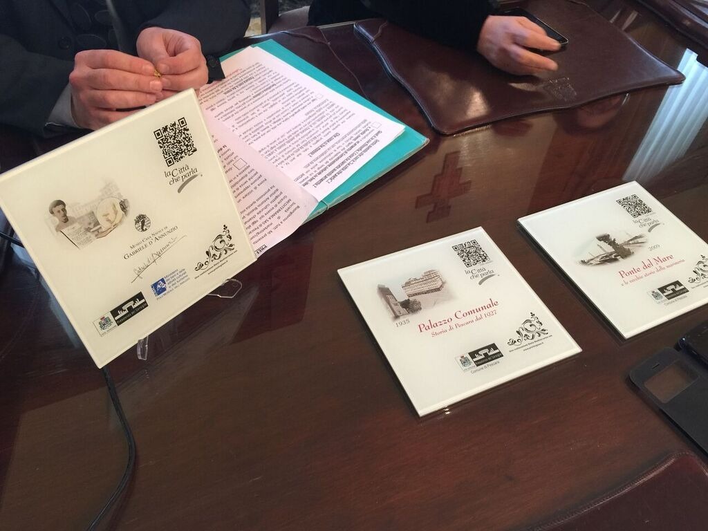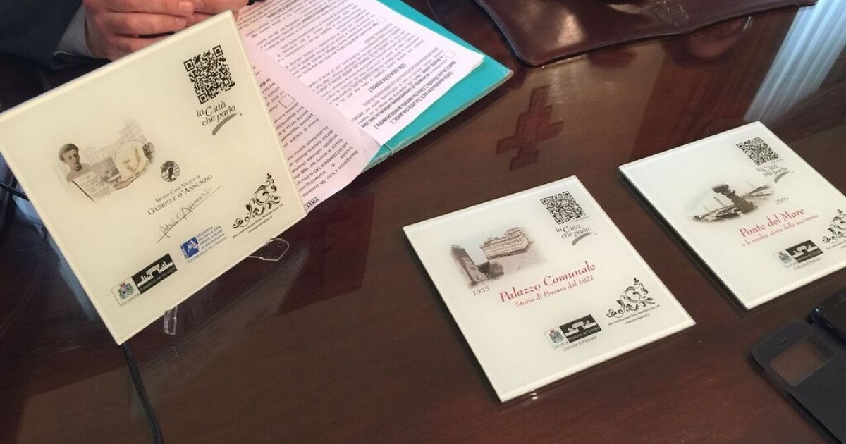 PESCARA TECNOLOGICA. Sono in tutto 12 le mattonelle che nelle prossime settimane verranno collocate a ridosso di altrettante presenze culturali, artistiche e storiche e consentiranno a queste di raccontarsi attraverso un QR Code. La storia della città sarà a portata di smartphone grazie al progetto “La città che parla”, a cura della Società Dieta Mediterranea di Gaetano Ciglia e con la collaborazione attiva di Presidenza del Consiglio Comunale, Polo Museale d’Abruzzo, Conservatorio e le due principali basiliche cittadine.