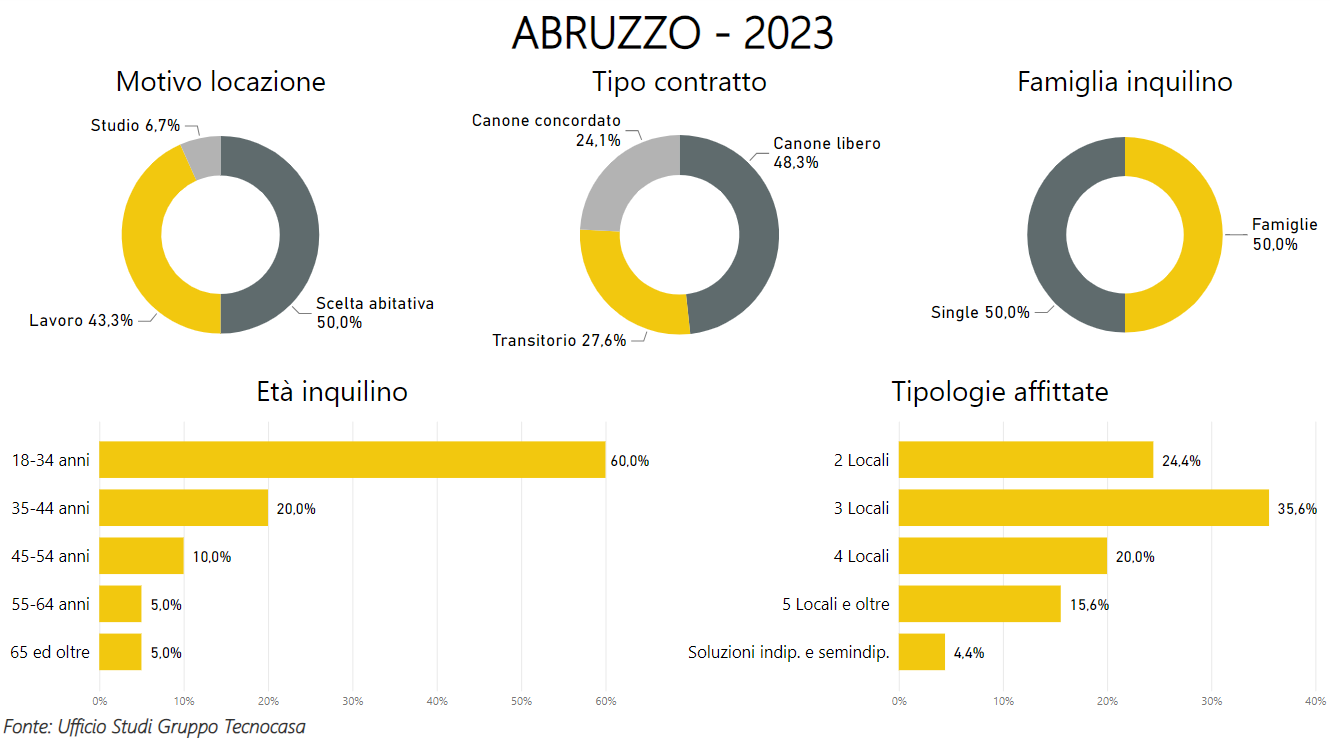 L’Ufficio Studi del Gruppo Tecnocasa ha analizzato le locazionirealizzate attraverso le agenzie affiliate attive in Abruzzo nel2023.
