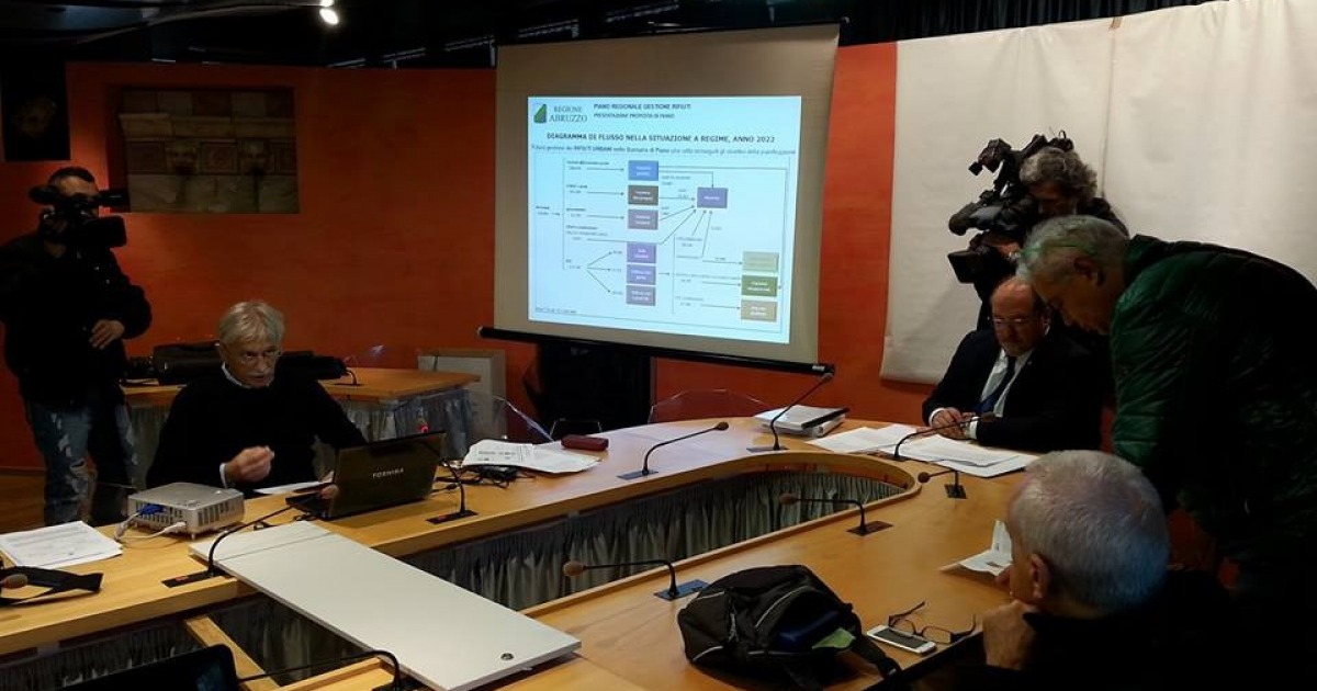 PRESENTATO IL PIANO GESTIONE RIFIUTI ABRUZZO 2017-2022. E' stato presentato oggi, in conferenza stampa, il voluminoso Documento finale di Piano Regionale Gestione Rifiuti di 500 pagine, redatto al fine di adeguare la normativa vigente in materia di gestione del ciclo dei rifiuti dettata dalla L.R. 19/12/2007, n. 45 e s.m.i. e la pianificazione di riferimento. Lo scenario di Piano sviluppato considera come orizzonte temporale il periodo 2017-2022.