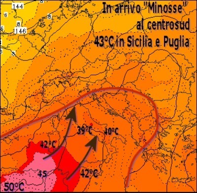 CALDO FINO A MERCOLEDI, POI PIOGGE? Secondo le previsioni della Protezione civile, domani, martedì 10 luglio, la temperatura massima sarà di 33 gradi, ma quella percepita sarà di 36 gradi a causa dell’afa e dell’umidità. Mercoledì 11 luglio la massima sarà di 34 gradi, e quella percepita di 36 gradi, con livello di attenzione 3, ossia massimo rischio per la popolazione. Dopodichè l'effetto caldo torrido di Minosse dovrebbe attenuarsi per dare spazio ad un pò di fresco ed alcuni strascichi di pioggia.
