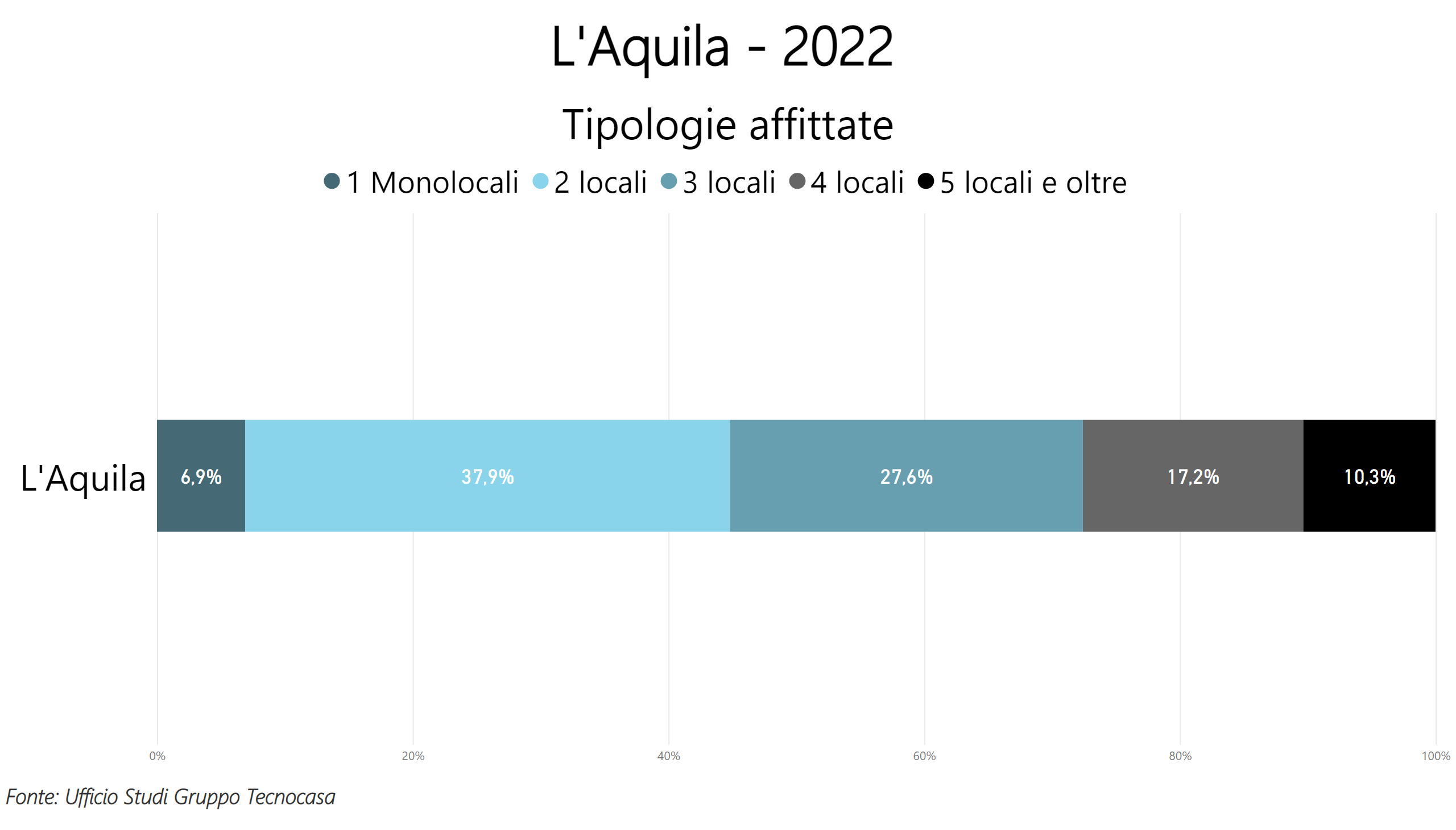 La tipologia più affittata nel capoluogo abruzzese è il bilocalecon il 37,9% delle preferenze, mentre al secondo posto ci sono i trilocali con il 27,6% delle scelte.