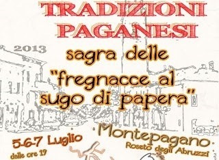 AL VIA LA 'MITICA' SAGRA DELLA FREGNACCIA A MONTEPAGANO. La Res-Creativa, associazione culturale nata le 2012, ha organizzato per il terzo anno consecutivo l'imperdibile evento enogastronomico conosciuto col nome di "Sagra delle Fregnacce al sugo di Papera".