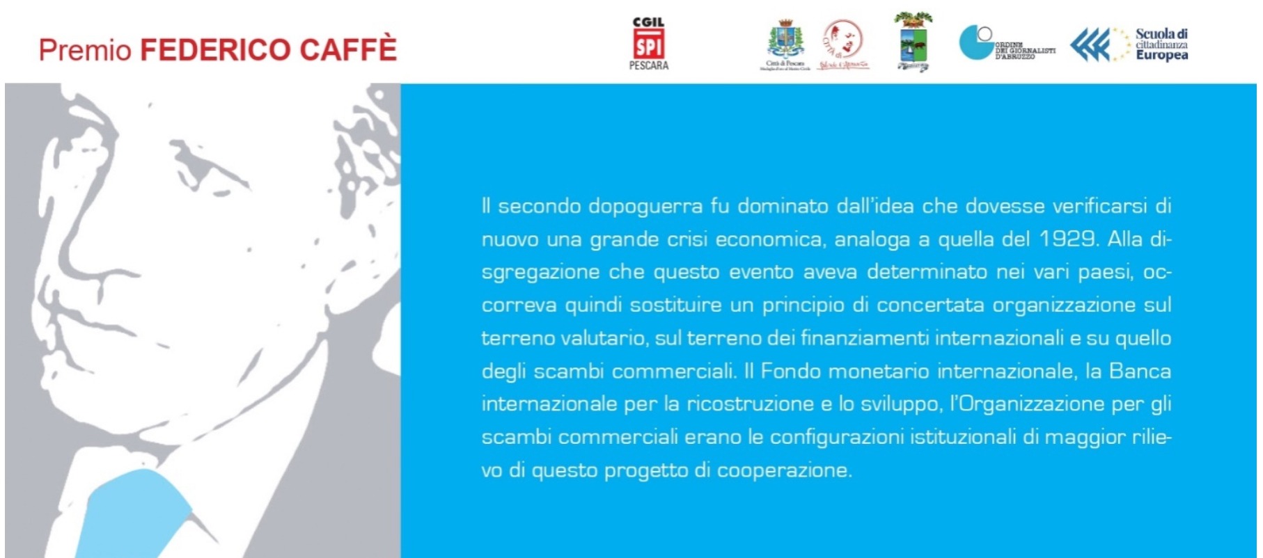Con questo Premio lo SPI-CGILricorda ed onora la memoria del professor Federico Caffè e si rivolge alle nuove generazioniper far conoscere e approfondire la straordinaria ricchezza di pensiero, di azione e di testimonianza del grande economista pescarese.
