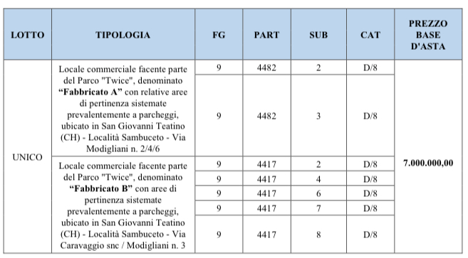 La cifra di partenza é di quelle importanti: la base d’asta valutata nella perizia di stima e’ di 7.000.000 di euro.