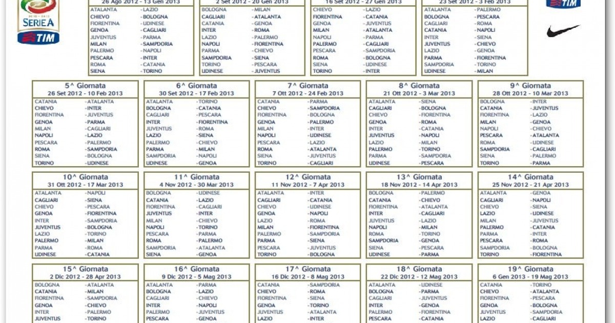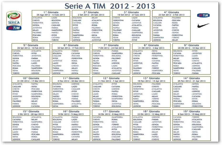 Esordio in casa con l'Inter domenica 26 agosto poi Torino e Samp in casa. Le altre partite di Serie A