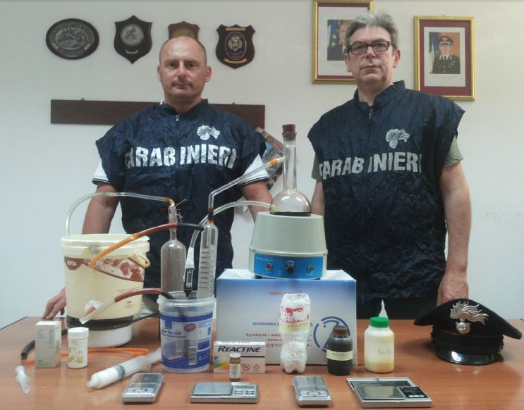 UNA DROGA DAGLI EFFETTI DEVASTANTI. L’intervento dei Carabinieri ha stroncato sul nascere la produzione del terribile stupefacente, introdotto solo dal 2010 nelle tabelle del Ministero della Salute: si tratta di una delle droghe più economiche e dai effetti più letali effetti attualmente sul mercato.