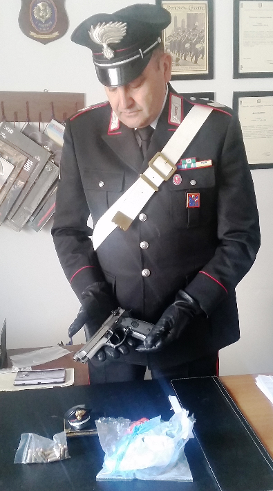 Nonostante il recupero dello stupefacente i militari hanno proseguito minuziosamente le ricerche, che hanno portato al rinvenimento in cantina, all’interno di uno scatola posta su uno scaffale, di una pistole Beretta cal. 7.65 perfettamente funzionante. L’arma, risultata con matricola abrasa, è stata trovata con inserito il serbatoio e all’interno 14 colpi dello stesso calibro.