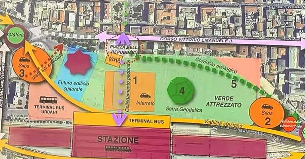 “C’è da rimanere esterrefatti di fronte alla precipitosa traduzione in numeri e planimetrie delle immagini elettoralistiche che sono state usate per prospettare il futuro delle aree di risulta FFSS, un luogo decisivo per Pescara. Circa 12 ettari al centro della città, acquisiti a buon prezzo perché vi si realizzava il parco centrale, per i quali i Piani Regolatori prevedevano una riserva di verde pari all’80% ( destinando a servizi il restante 20% ), oggi vengono smembrati ed immiseriti come se fosse una lottizzazione. Del Palazzo per gli uffici regionali abbiamo parlato e ribadito che si tratta di un danno inferto alla città, la sottrazione di un bene comune e la immissione di funzioni inquinanti e apportatrici di ulteriore congestione; e il contenzioso è ancora aperto. Ci è stato risposto, comunque, che quell’intervento avrebbe pagato il parco e la intera sistemazione dell’area. Prima foglia di fico che cade: non solo l’area occorrente (pagata dalla collettività cittadina) verrà ceduta gratis all’Ente Regione ma, a quanto sembra, non contribuirà per la realizzazione delle altre opere previste sull’area. Così hanno sistemato tutta la parte Nord; ora prendiamo visione delle opere per la parte Sud , come risultano dagli ultimi atti della Giunta uscente e dai primi della nuova Giunta ( ancora composta da tre soli componenti). Vediamo una planimetria in cui domina la enorme sagoma di un autosilos alto 15 metri ( 5 piani di casa) e con il fronte più lungo a ridosso delle abitazioni esistenti, alcune delle quali verranno addirittura sovrastate in altezza; muraglie bianche e grate metalliche ( versione dialettale del bosco verticale?) anticipano l’immagine di un grande volume estraneo al contesto che potrà solo peggiorare con la sua presenza. Il parco che era stato annunciato per ” almeno 6,5 ettari” ( ovvero circa la metà dell’area, come denunciammo ritenendo la quantità insufficiente) viene ridotto a circa 3 ettari, di cui più di un ettaro di viali e piazzette lastricati con altra betonella, si suppone. Quel che ancora di più sorprende è che la distribuzione proposta è tutta organizzata in funzione dell’ ingresso al parcheggio coperto, nuova cattedrale dell’automobile, rispetto alla quale si organizzano piazzette con disegnati intorno alcuni casotti/ bancarelle, forse come decisivo apporto alla ripresa del commercio. Un giardinetto tra strade ( perché oltre alla attuale ne compare un’altra sul margine estdell’area) come vestibolo per chi lascia l’automobile; il contrario di una iniezione di naturalità al centro di Pescara. Alla realizzazione del parco/giardinetto provvederà la Fondazione PescaraAbruzzo, perseguendo la sua tradizione di coadiuvare alcuni progetti comunali; un precedente accordo, che registrava la ribadita disponibilità della Fondazione, è stato rivisto e modificato ( si parla ora di cifre e non di estensione ). Vorremmo che queste risorse - e le altre del cosiddetto Masterplan che ancora dovrebbero essere disponibili – potessero contribuire , in un progetto generale di qualità che ancora manca, a realizzare quella importante occasione di incontro tra i cittadini, di miglioramento dell’aria, di resistenza al cambiamento climatico che è data dal Parco Centrale della città. Il nuovo Consiglio Comunale, in rappresentanza dei cittadini che lo hanno eletto, al di là delle varie appartenenze, deve farsi carico di questa grande questione, abbandonando le attuali visioni riduttive e parziali”.