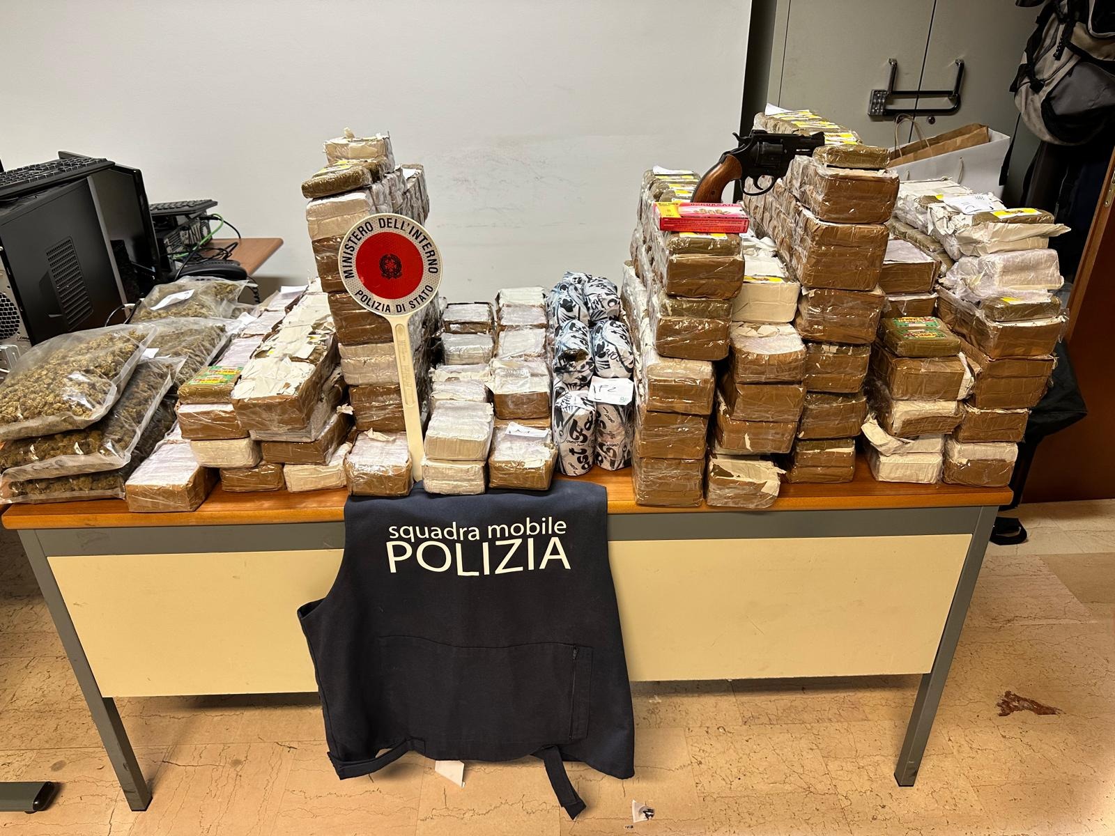 Ieri sera, i poliziotti della Squadra Mobile, nell’ambito di una mirata attività volta al contrasto dello spaccio di sostanze stupefacenti disposta dal Questore Solimene, ha tratto in arresto, un uomo già noto alle forze dell’ordine, nella flagranza dei reati di cui all’art.73 del D.P.R 309/90, con 130 kg di hashish suddivisi in 1379 panetti e 2 kg di marijuana suddivisi in 8 buste da 250 gr. l’una. Per un valore complessivo di circa 400 mila euro (valore all’ingrosso).