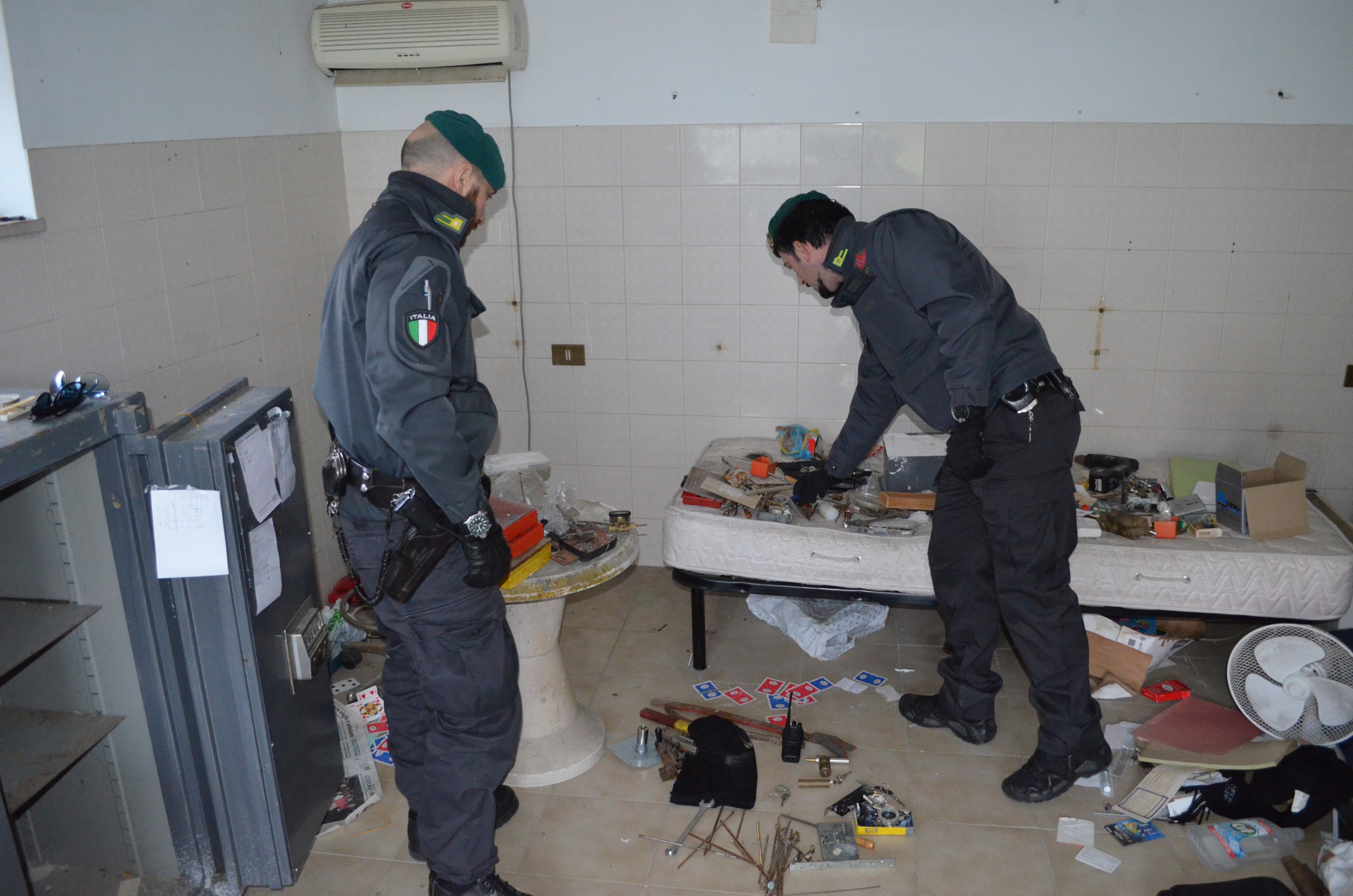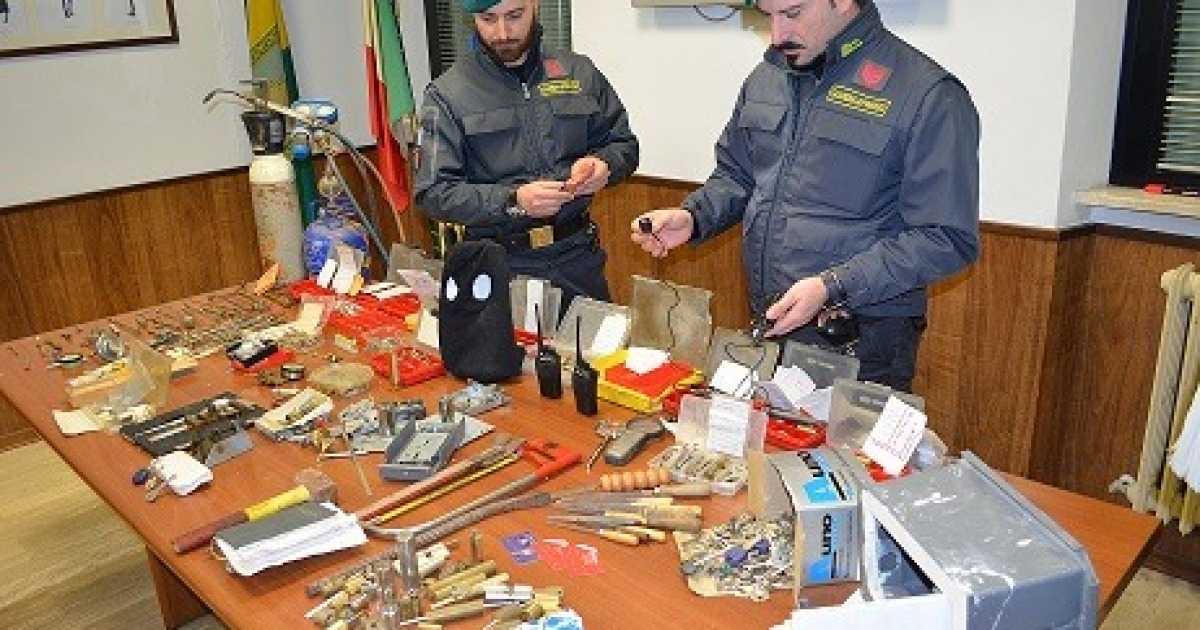 Nello stesso locale era stata allestita una vera e propria “palestra dello scassinatore”, vista la presenza di diverse tipologie di casseforti, aperte e smontate per lo studio, trapani e tornio con dispositivo di programmazione e controllo numerico.