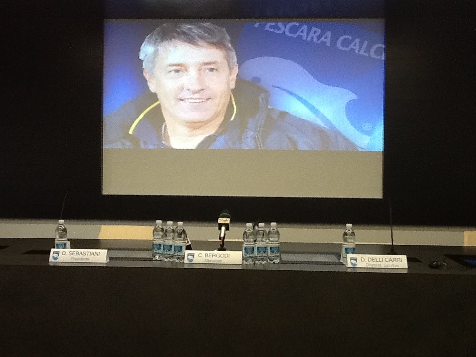 LA PRESENTAZIONE DI CRISTIANO BERGODI. «Iniziamo subito così il mister può raggiungere la squadra e preparare la gara di Roma». Comiincia così l'introduzione del nuovo allenatore del Pescara, Cristiano Bergodi, da parte del N1 del Delfino Daniele Sebastiani. Il presidente ha raccontato le fasi che hanno determinato la decisione «potevamo scegliere tra Marino e Colomba ma alla fine ci ha convinto il progetto Bergodi». Dopo la parola è passato al 47enne tecnico di Bracciano che ha detto «è motivo di orgoglio essere legato per sei mesi alla città nella quale ho vissuto 9 anni e dove ho contribuito a scrivere una pagina importante della storia di questa maglia nell 1986/87». Bergodi trova una squadra decimata (per infortuni e squalifiche) e che ha 11 punti in classifica. Inoltre, il calendario che attende il sodalizio biancazzurro prima della sosta natalizia non fa troppo sorridere: Roma, Napoli, Genoa e Catania le prossime gare.