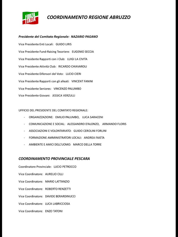 Il tesoriere del partito sarà Eugenio Seccia, mentre la responsabilità dell'ambiente e amici del territorio è andata al veterinario spoltorese Marco Della Torre.