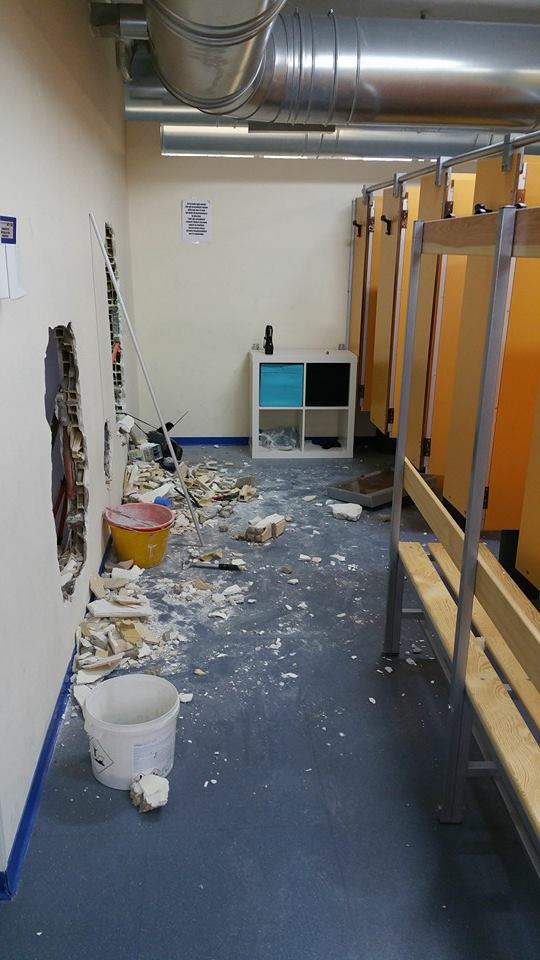 I malviventi hanno letteralmente sfondato il muro d'ingresso per rubare dalle macchinette asciugacapelli e distruggere gli spogliatoi