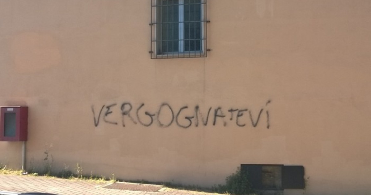 BLITZ NOTTURNO IN VIA PESARO: "VERGOGNATEVI" E' IL MESSAGGIO RIVOLTO ALLA POLIZIA. Il fatto di per sè è grave perchè non si tratta della solita scritta che, più o meno ovunque, si può trovare in città. Stavolta l'ignoto imbrattatore ha preso di mira un luogo simbolo del patto sociale, cioè quella parte dello Stato che ha il compito di prevenire i reati. La scritta "Vergognatevi" lasciata sul muro di cinta della Questura di Pescara, in via Pesaro, è stata realizzata da qualcuno fra la serata di ieri e la scorsa notte.