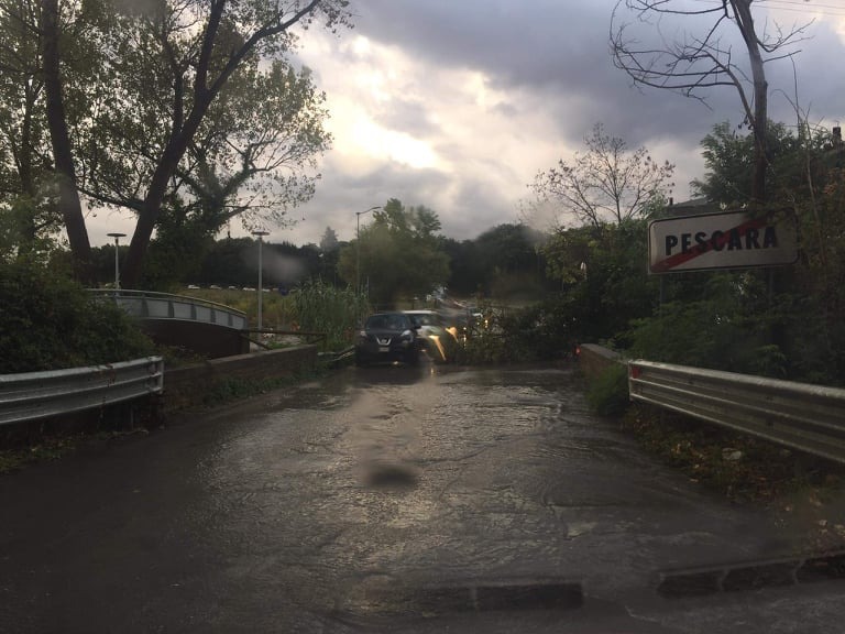 BOMBA D'ACQUA CON GRANDINATA SU PESCARA: TRAFFICO, ALBERI CADUTI E ALLAGAMENTI. Un violento acquazzone con una grandinata ha causato numerosi disagi a Pescara e nell’hinterland. Allagamenti, strade invase dal fango, alberi e rami caduti in piu’ punti della citta’ come sul 'Ponte della Motorizzazione' al confine con Villa Raspa.