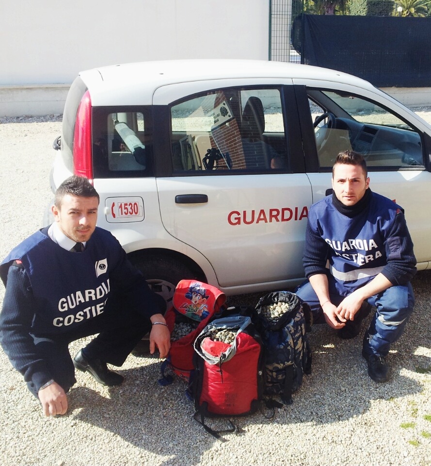 GIULIANOVA. SEQUESTRATI 100 KG DI VONGOLE. Ennesima operazione del Comando marittimo di Giulianova contro la pesca di frodo e illegale. Nelle operazioni sono state recuperate oltre 100 Kg di vongole della specie venus gallina: il sequestro è avvenuto lungo la banchina del molo nord del Porto di Giulianova. Il pescatore, accortosi dell'arrivo degli uomini della capitaneria al servizio del comandante Sandro Pezzuto, ha abbandonato la merce sul posto e di è dato alla fuga precipitosa. Negli zainetti lasciati c'erano i mitili da immettere nel mercato della pesca fraudolenta o presso qualche esercizio commerciale della zona oppure, addirittura, venduto porta a porta.