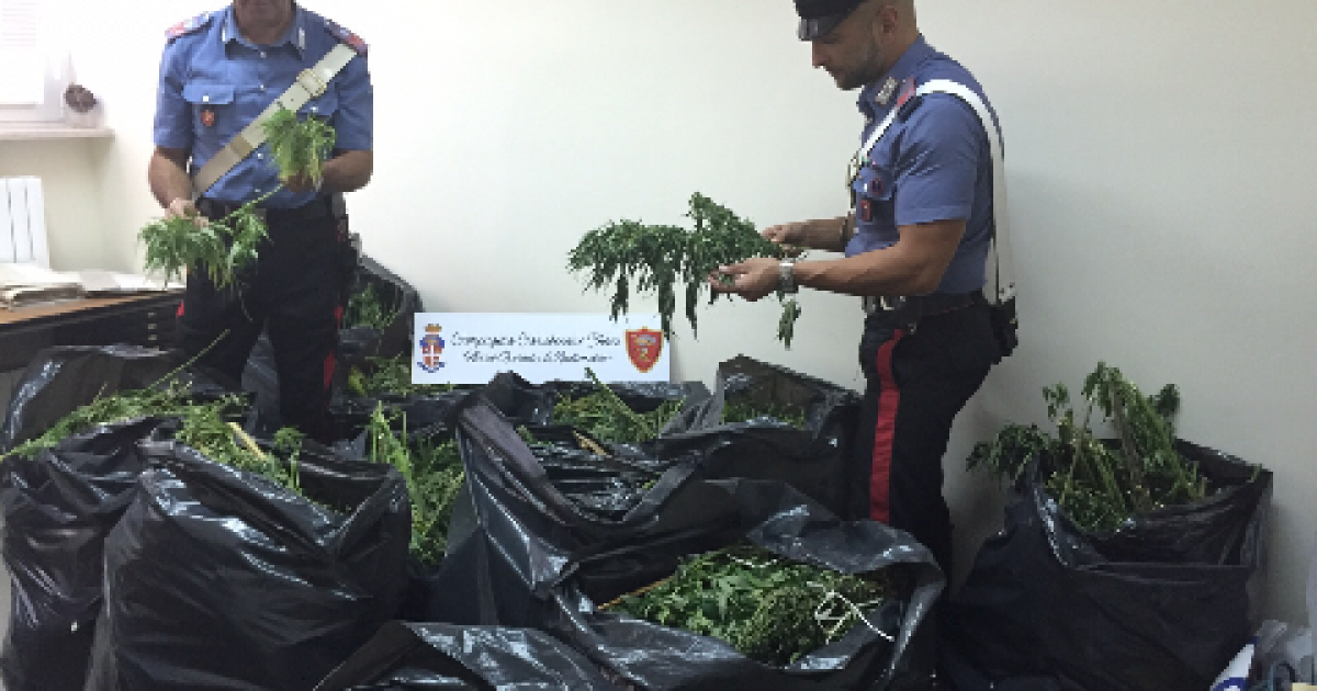 Il peso complessivo delle coltivazioni rinvenute e sequestrate è di circa 120 kg lordi, dalle quali poi sarebbe stato possibile ricavare, tra foglie ed infiorescenze, una percentuale stimata di circa il 10%, ovvero intorno ai 10 kg, di stupefacente commerciabile, per un valore di mercato quantificabile nell’ordine dei 25000 o 30000 euro.