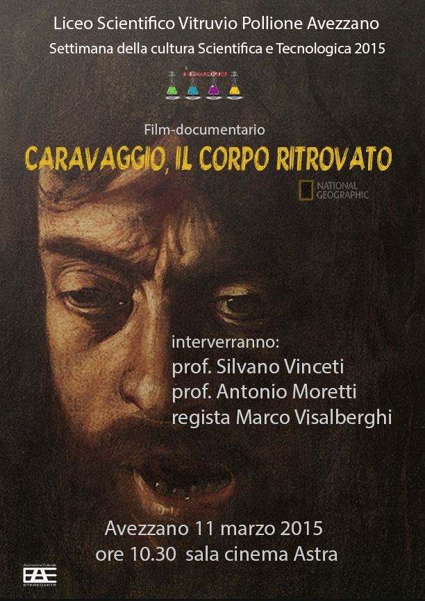 PORTO ERCOLE. Le ricerche di un team di scienziati coordinato da Silvano Vinceti per stabilire se i resti rinvenuti a Porto Ercole appartengano al Caravaggio: una grande avventura che è diventata un documentario, dal titolo "Caravaggio, il corpo ritrovato", che verrà trasmesso ad Avezzano nelle sale del cinema Astra il prossimo 11 marzo 2015 nell’ambito della settimana della cultura scientifica e tecnologica organizzata dal Liceo Scientifico Vitruvio Pollione Saranno presenti; il prof. Silvano Vinceti, il prof. Antonio Moretti e il regista del documentario Marco Visalberghi.