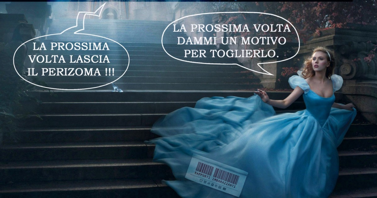 Se immagino Cenerentola e il suo feticista principe, vedo distintamente differenti versioni della vicenda: lui prende la scarpa persa dalla fanciulla dopo la mezzanotte, la accarezza amorevolmente fantasticando sulla forma dell'amabile fanciulla che possa averla calzata e la ripone amorevolmente nella teca dei cimeli, tornando in cerca della scarpa, e non della fanciulla, solamente all'occorrenza.