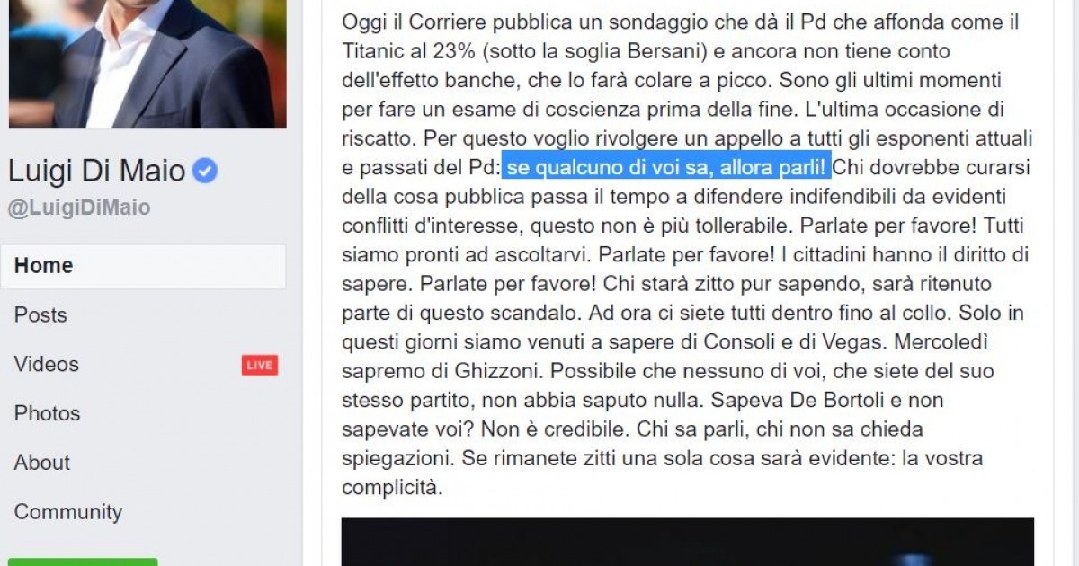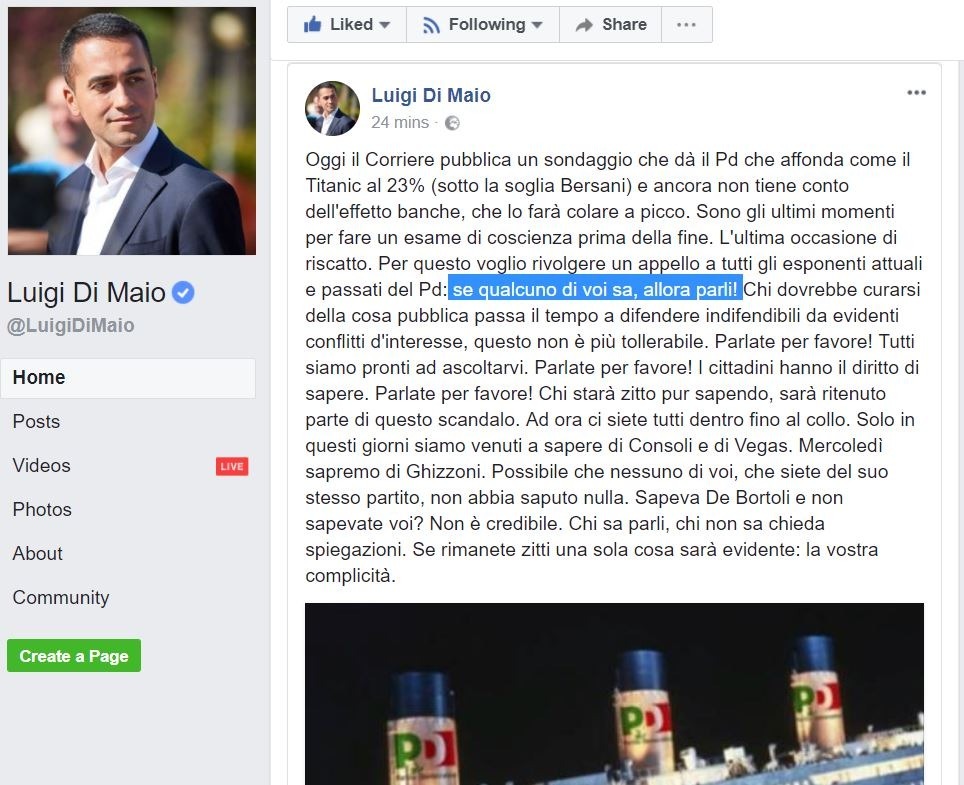 Foto: l'appello del candidato premier Luigi Di Maio al Pd.