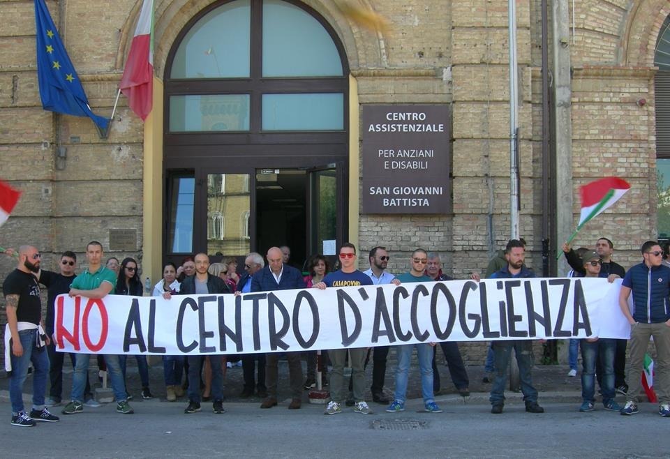 CHIETI CONTRO IL CENTRO D'A'ACCOGLIENZA IN CENTRO. E' stata una protesta pacifica, quella andata in scena ieri davanti agli Istituti Riuniti San Giovanni Battista di Chieti. Ma non per questo si può dire che sia stata meno dura, poichè il tema, quello dell'accoglienza, è l'argomento caldo della politica italiana. L'attuale sindaco di Chieti e una cinquantina di sostenitori di Casapound e della destra hanno raggiunto l'ingresso della sede dei Cappuccini, in va dei Cappuccini, subito: cioè non appena si è diffusa la notizia via prefettura che una ventina di immigrati, richiedenti asilo politico perchè in fuga da paesi in guerra, sarebbero stati trasferiti nel capoluogo teatino.