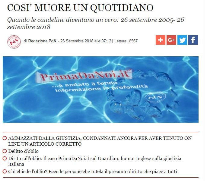 CHIUDE PRIMA DA NOI. L'ABRUZZO PERDE "UNA COLONNA" NELL'INFORMAZIONE. Un abbraccio virtuale alla redazione di #PrimaDaNoi.it quotidiano libero e indipendente ed al suo direttore #AlessandroBiancardi costretto a chiudere dopo 13 anni di scoop e inchieste giornalistiche - "rinascimento per un Abruzzo addormentato” - uno dei pochissimi giornali non appiattito dal servilismo e dalle tristi logiche del sistema cui siamo abituati a distinguere.