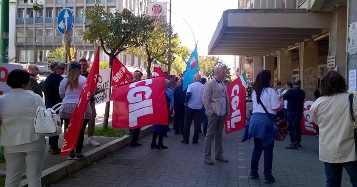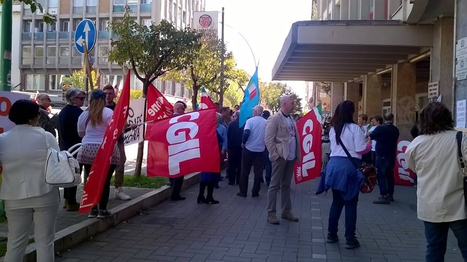NESSUNA DECISIONE DAL TAVOLO DELLA REGIONE. Rumorosa protesta dei cittadini e dei sindacati contrari alla chiusura del punto nascita di Sulmona, ieri pomeriggio a Pescara, davanti all'ingresso degli uffici della Regione Abruzzo durante la riunione del Comitato Percorso Nascita convocata dalla maggioranza di centrosinistra.