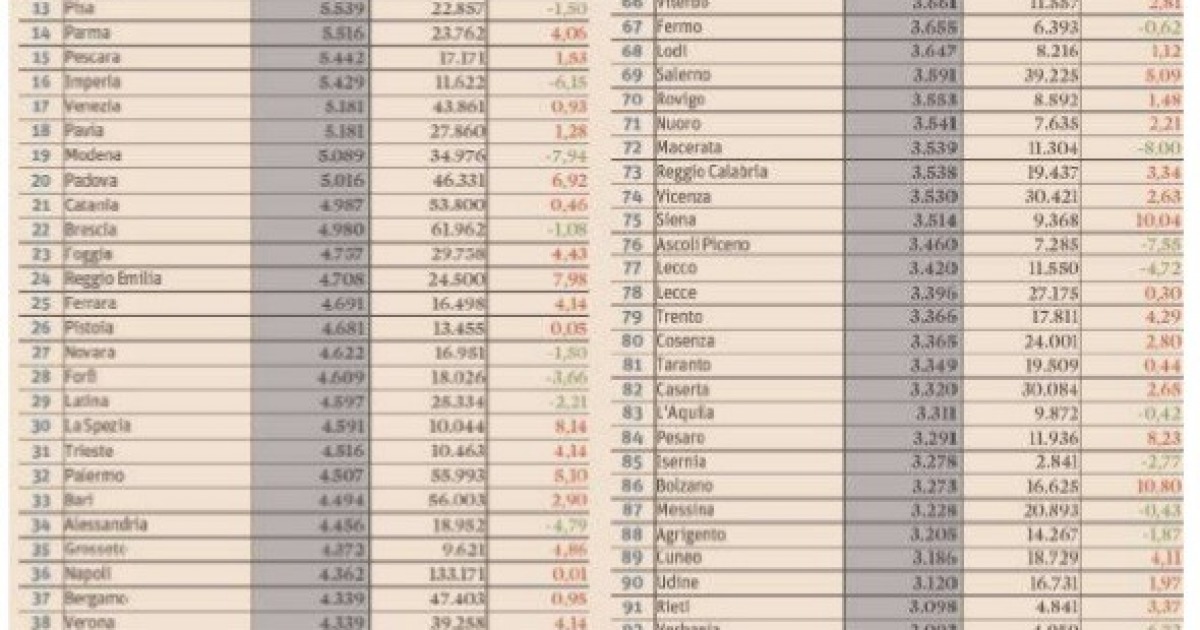 Secondo il quotidiano economico Milano batte Napoli (solo 36° posto). L'Aquila è 83esima