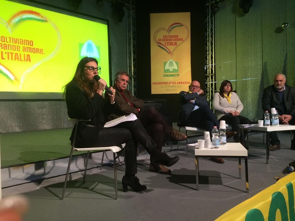 COLDIRETTI ABRUZZO, BILANCIO 2017 DELL'AGROALIMENTARE REGIONALE. Calo delle maggiori produzioni a causa del clima pazzo ma aumento dell’export relativamente al vino, oltre duecento giovani neo-insediati di cui il 42% donne e meno infortuni sul lavoro. Ma soprattutto una maggiore attenzione del consumatore abruzzese all’origine del cibo, per lo più per i beni di maggiore consumo. Uno prima di tutti: la pasta. E’ il bilancio dell’agroalimentare dell’Abruzzo 2017, presentato questa mattina nel padiglione del porto turistico del Marina di Pescara da Coldiretti alla presenza di oltre 1000 (mille) agricoltori, insieme a decine di sindaci e amministratori che si sono riuniti per l’incontro intitolato simbolicamente “Coltiviamo un grande amore: l’Italia”. Lo slogan, usato per la campagna di tesseramento del 2018, è stato il fulcro della mattinata in un padiglione straripante di bandiere e di imprenditori che hanno passato in rassegna l’anno che volge al termine. Presenti il presidente di Coldiretti Abruzzo Domenico Pasetti, il direttore Giulio Federici, la presidente di Pescara Chiara Ciavolich che ha fatto gli onori di casa, il presidente di Coldiretti Chieti Sandro Polidoro e di Coldiretti Teramo Emanuela Ripani, ma anche l’assessore regionale Dino Pepe, il professor Ettore Cianchetti dell’Istituto senologico Abruzzese (ISA), e tantissimi soci molti dei quali sono intervenuti e hanno parlato, per mettere “sul piatto” le problematiche più stringenti del settore.
