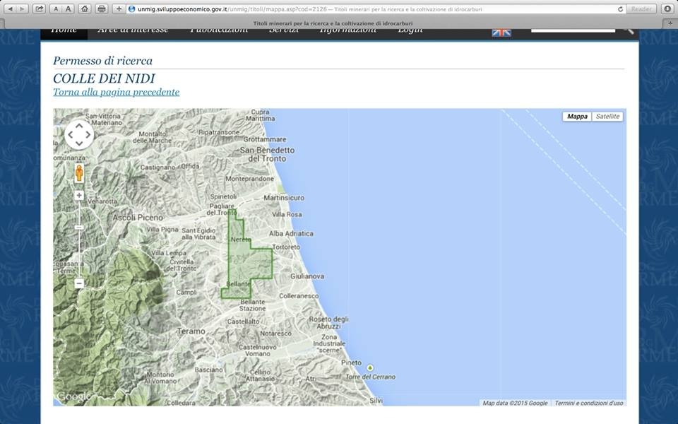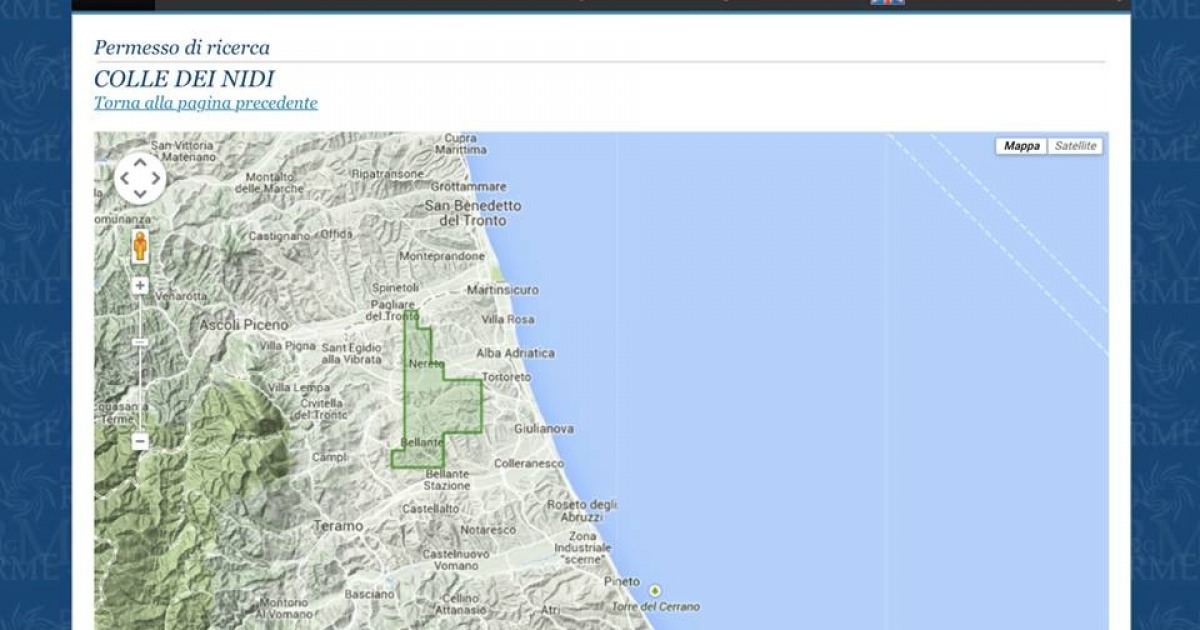 Il TAR del Lazio ha annullato il permesso di ricerca di idrocarburi "Colle dei Nidi" (Teramo), un'area delle colline teramane" storicamene votate all'agricoltura di pregio ed alla produzione di vino Montepulciano d'Abruzzo DOCG.