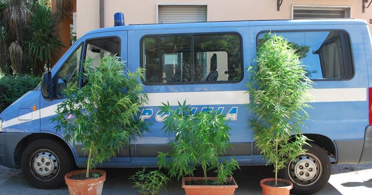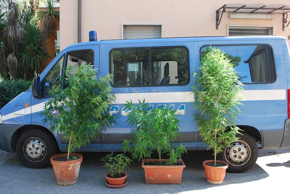 COLTIVAVA PIANTE DI MARIJUANA SUL TERRAZZO. Nella mattinata una "gazzella" della Polizia di Stato, nel corso del servizio di prevenzione e controllo del territorio pescarese, ha notato spuntare da un terrazzo di un'abitazione alcune strane piantine.