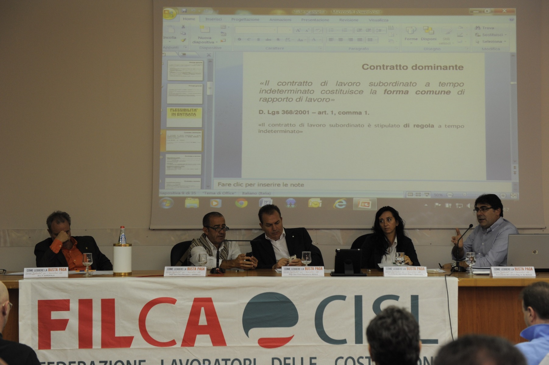 LA GIORNATA. La giornata si è articolata in tre fasi. Nella prima il consulente del lavoro Franco Scannella ha illustrato i cambiamenti apportati dalla “Riforma Fornero” nel settore dei contratti atipici. Scannella si è soffermato sul contratto a tempo determinato, su quello di apprendistato, sulle nuove norme sulla partita IVA, scendendo nel dettaglio del cosiddetto regime dei minimi. Spazio poi alla riflessione sulla lettera di dimissioni, e sulla formula del part time. La seconda fase è stata affidata alla consulente del lavoro Angela De Matteis che ha analizzato nel dettaglio i contenuti della busta paga, puntando più volte l'attenzione sulla parte introduttiva della busta paga che contiene informazioni fondamentali nella determinazione della retribuzione. Infine il corso si è concluso con l'avvocato Floriano Garofalo dello Studio Legale Filca-Cisl Pescara che ha fornito notizie inerenti la controversia giuridica nei confronti delle aziende.
