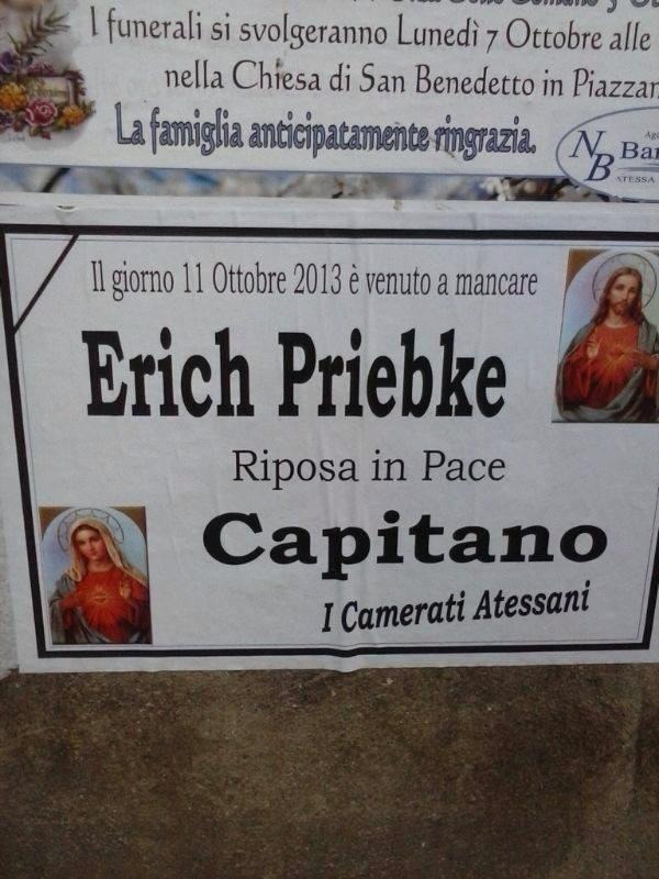 Il sindaco di Atessa Nicola Cicchitti ha ordinato la copertura del santino funebre inneggiante a Erick Priebke