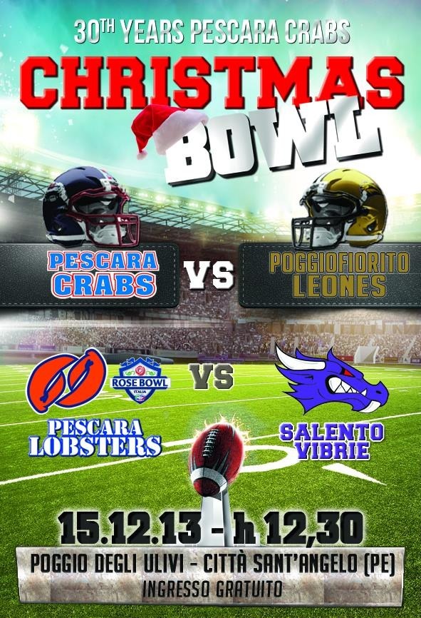 CRABS FESTEGGIANO 30 ANNI DI FOOTBALL AMERICANO. Era la fine del 1983 quando un gruppo di giovani appassionati, mise in piedi la prima squadra dello sport dalla palla lunga un piede nella città dannunziana. Stiamo parlando dei Crabs Pescara. Da allora molta acqua è passata sotto i ponti e tante yard sono state macinate e nonostante la lunga pausa, a cavallo degli anni ’90-2000, la passione di alcuni protagonisti di allora non è andata sopita. E’ merito loro, oltre allo spirito di nuovi appassionati, se oggi possiamo parlare ancora di football in città.