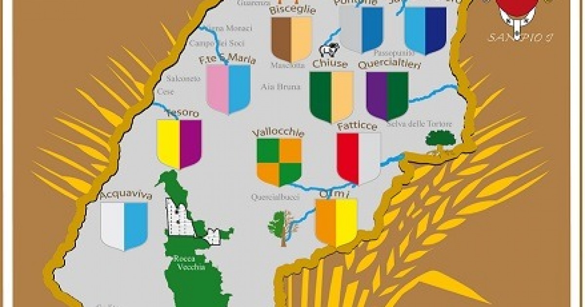 Roccaspinalveti è un comune di Chieti di 1600 abitanti che conta 13 contrade, ognuna ancora caratterizzata da un logo antico; in occasione del palio, ogni contrada sta ultimando la preparazione del proprio covone che reca una precisa qualità di grano e una caratteristica legatura della fascina, elementi che rimandavano anticamente allo status sociale ed economico delle micro collettività del territorio, ma anche alla solidità spirituale e collettiva che la comunità di Roccaspinalveti ha saputo mantenere vivi, nel corso della storia, nei periodi di indigenza.