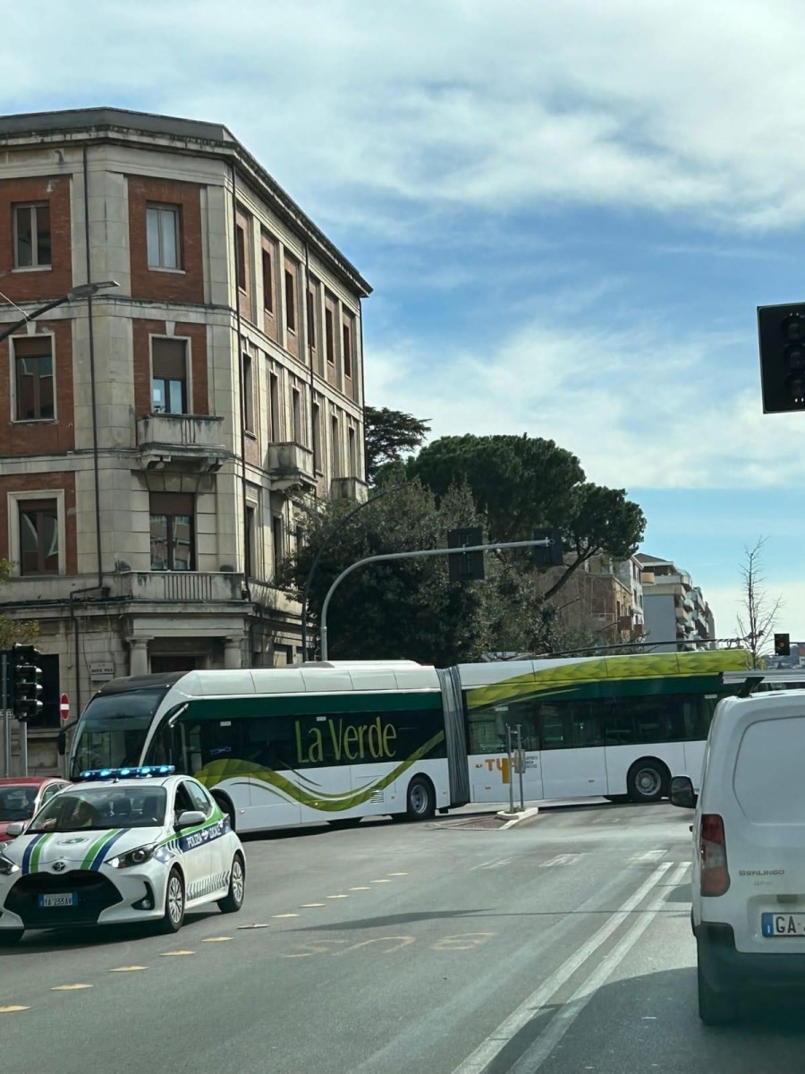 Come si legge sul quotidiano online www.ilmontesilvano.it il debutto o, meglio, le “prove tecniche” del filobus che collegherà (o collegherebbe) la città di Pescara con la città di Montesilvano attraverso un mezzo elettrico lungo l’ex tracciato ferroviario per 8 chilometri, oggi Strada Parco, si sono rivelate piuttosto deludenti rispetto alle aspettative. Come registra una foto che sta facendo il giro del web attraverso i social il mezzo “La Verde” di proprietà del gestore del servizio di trasporto pubblico ha incontrato non poche difficoltà nella ormai ‘celeberrima’ via Marconi, la strada oggetto di un intervento di riqualificazione e cambiamento della viabilità che fino ad oggi ha creato solamente problemi ai cittadini pescaresi ed ai commercianti. Nello specifico il problema ha riguardato una manovra di circumnavigazione di una delle rotatorie presenti sulla strada ma l’autobus è rimasto bloccato. Questa circostanza ha scatenato la polemica e ribadito le perplessità intorno a questa infrastruttura, pensata alla fine del secolo scorso e realizzata (diciamo che è ancora da ultimare) dopo un trentennio. Senza contare il costo sostenuto sino ad oggi dal contribuente ed anche questo non è un dettaglio da sottovalutare nella questione costi/benefici rispetto al progetto filovia.