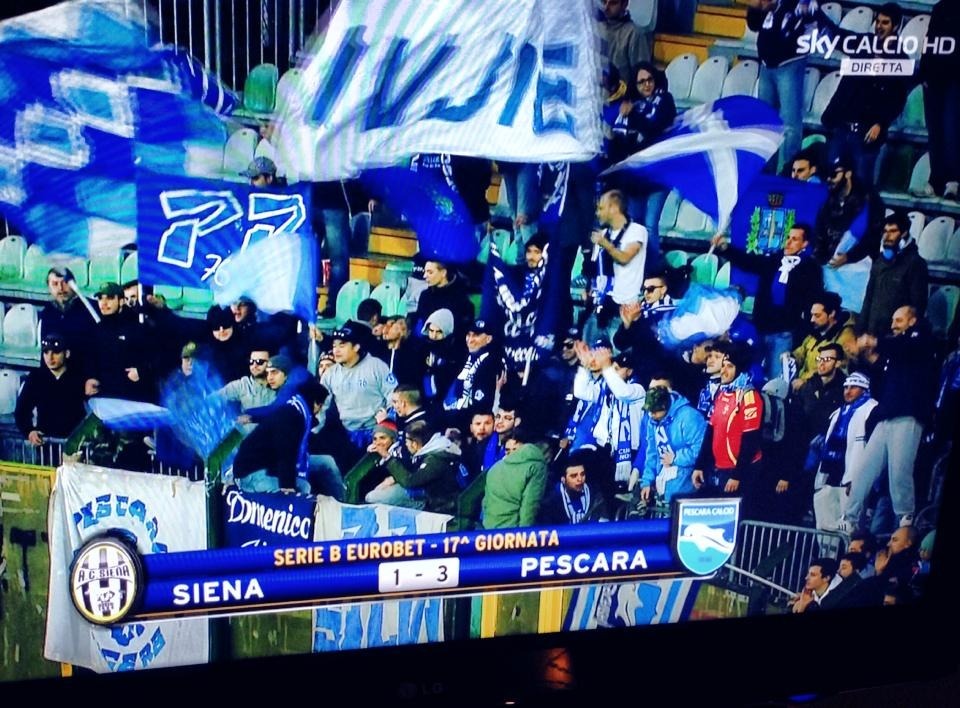 PER-FET-TI! Come direbbe lo speaker dello stadio Adriatico. Questa volta sì! La migliore partita del Pescara di quest'anno è coincisa anche con la grande vittoria di Siena: uno scontro diretto al quale i biancazzurri sono arrivati come Hulk Hogan quando entrava sul ring prima degli incontri. Il Pescara ha dato un chiaro segnale al campionato andando a segno con tutti e tre gli attaccanti in campo, sciorinando un gioco veloce, come mai in questa stagione. Grandi le prestazioni dei singoli oltre che della formazione stessa. Una prova a tutto tondo e soprattutto da grande squadra, che ha aggredito immediatamente l'avversario e non si è chiusa una volta in vantaggio. Alla fine applausi per i cannonieri Maniero, Ragusa e Politano che hanno finalizzato il gran lavoro del resto del gruppo. Da oggi il miglior attacco della serie B può godersi il momento in vista della prossima sentitissima partita di domenica a Lanciano. Per il Pescara in assoluto il momento migliore dell'anno, guarda caso caratterizzato dai 'senatori' in panchina. Da segnalare il 'solito' errore arbitrale che poteva essere determinante: la mano galeotta di Giacomazzi in occasione del gol del Siena non è stata ravvisata (strano eh?) dalla terna arbitrale, anche se vista da tutti. Il Pescara però questa volta è stato più forte delle avversità. Se tra una settimana la lancetta del livello dei biancazzurri sarà quella messo in campo al Franchi di Siena, a Lanciano ci sarà da divertirsi.