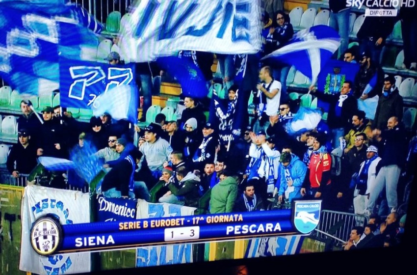 Ma la palla regina della serata doveva ancora capitare sul piede di Sforzini a due minuti dallo scadere: uno scivolone della difesa frentana sul campo fradicio spalanca la porta all'attaccante biancazzurro che, frettolosamente, tira rasoterra nel l'unico modo possibile per una deviazione di Sepe. Ebbene, palla fuori. Disperato Sforzini, disperata la squadra, disperato Cosmi, ma soprattutto disperati gli stoici tifosi biancazzurri che sono costretti a mandar giù questo nuovo boccone amaro. Alla fine, sotto la pioggia torrenziale, fa festa solo il Lanciano che prende un punto importante per la corsa play off. Quella del Pescara, con ogni probabilità, finisce sul piede sbagliato, quello di Sforzini. Il nostro urlo di gioia resterà sempre spezzato.