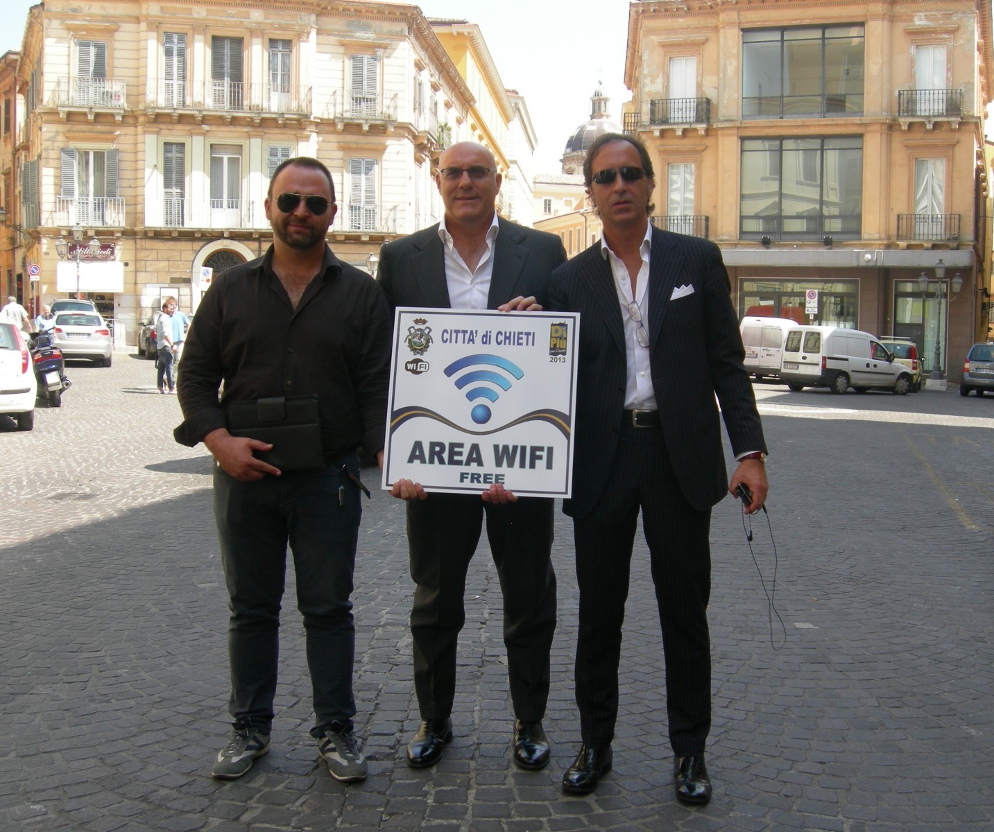 DI PRIMIO INAUGURA CHIETI 3.0. Il Sindaco di Chieti, Umberto Di Primio, l’Assessore all’Informatizzazione e Innovazione Tecnologica, Marco D’Ingiullo, e il Consigliere Comunale/Delegato all’Innovazione Tecnologica, Emiliano Vitale, questa mattina hanno presentato il progetto con il quale l'Amministrazione Comunale ha inteso attivare e gestire il servizio gratuito Wi-Fi nelle prime aree cittadine. Nello specifico le aree web free sono: Villa Comunale, Corso Marrucino (da piazza San Giustino a Piazza G.B.Vico) e Piazzale Marconi.