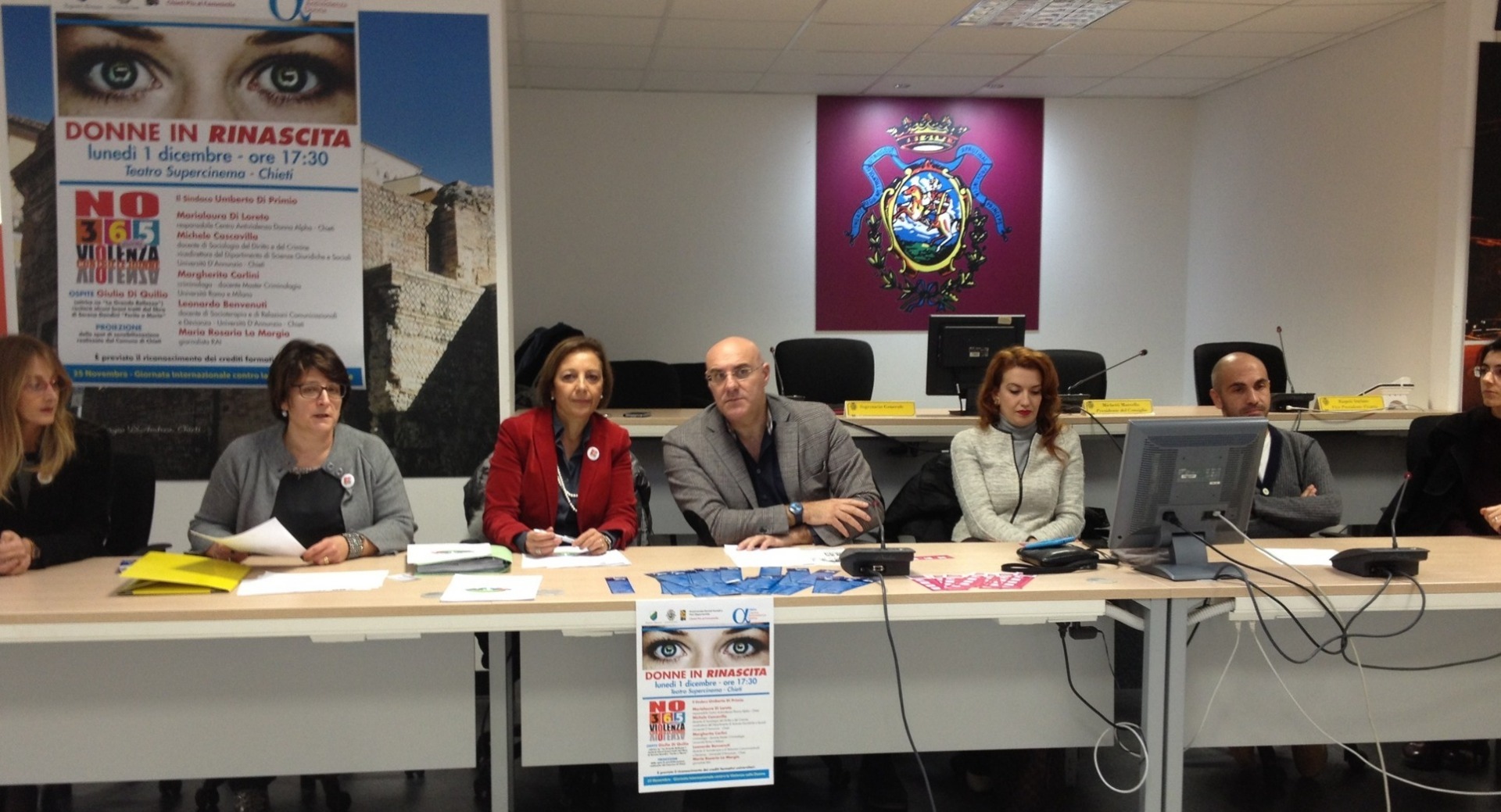 PREVENIRE LA VIOLENZA. «Come amministrazione – ha dichiarato De Matteo – unitamente al Centro Antiviolenza Alpha di Chieti, abbiamo voluto avviare il processo di costituzione della Rete istituzionale cittadina per condividere un percorso formativo e operativo di azioni volte alla prevenzione, alla tutela e a interventi in favore delle donne vittime di violenza. Tale percorso ha avuto inizio la scorsa settimana con un incontro cui hanno partecipato, oltre a Funzionari e Assistenti Sociali del Comune, i rappresentanti di Prefettura, Questura, Procura della Repubblica, Asl e Forze di Polizia. Si svolgeranno altri 7 incontri informativi dal 28 novembre 2014 fino a marzo 2015 quando verrà sottoscritto un protocollo operativo fra le Istituzioni con il quale verrà codificato il compito che ciascun soggetto aderente alla Rete dovrà svolgere. Per sensibilizzare l’opinione pubblica sul grave fenomeno, abbiamo voluto contribuire anche con la realizzazione di uno spot denominato “Donne in rinascita” per interpretare il quale è stata scelta l’attrice Giulia Di Quilio, che sarà trasmesso su tutte le emittenti locali».