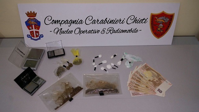 Uno studente universitario di Chieti è stato arrestato dai Carabinieri dopo essere stato trovato in possesso di 35 grammi di cocaina, bilancini di precisione e materiale per il confezionamento in dosi dello stupefacente. I militari del Nucleo Operativo e Radiomobile della Compagnia di Chieti, ieri sera, lo hanno fermato nei pressi della sua abitazione, nel quartiere “Tricalle”, mentre si stava allontanando a bordo della sua auto. Il giovane, di 28 anni, al momento del controllo aveva in tasca alcune dosi di cocaina pronte per la vendita. Nella sua abitazione i Carabinieri hanno poi trovato altre dosi della stessa sostanza stupefacente, piccole quantità di marijuana ed hashish, tre bilancini di precisione, 300 euro circa in contanti e delle bustine di cellophane abitualmente utilizzate per confezionare le dosi. La droga sequestrata ed il restante materiale erano stati riposti all’interno di una cassetta per attrezzi da lavoro, custodita in camera da letto. L’arresto del 28enne scaturisce da una serie di controlli antidroga messi in atto dai Carabinieri della Compagnia di Chieti nella zona del Tricalle. Da alcuni giorni gli uomini dell’Arma avevano notato uno strano andirivieni di soggetti conosciuti come abituali assuntori di droghe nei pressi dell’abitazione dello studente universitario visto, in più occasioni, in loro compagnia. Ieri sera, dopo il fermo, è arrivata la conferma. La droga sequestrata sarà ora analizzata al fine di stabilire l’esatto principio attivo. Il 28enne, su disposizione dell’Autorità Giudiziaria, è stato posto agli arresti domiciliari in attesa della convalida del suo arresto.